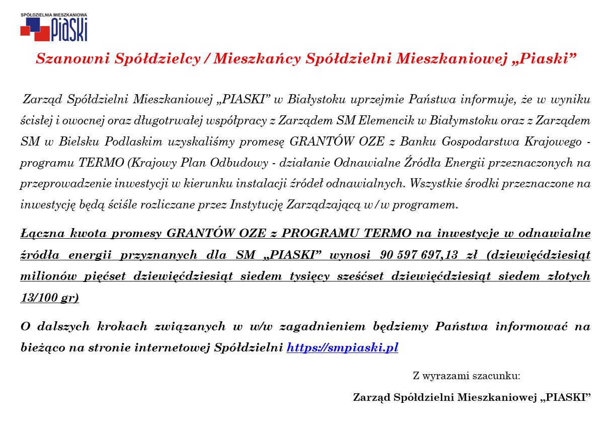 Promesa GRANTÓW OZE z Banku Gospodarstwa Krajowego – programu TERMO