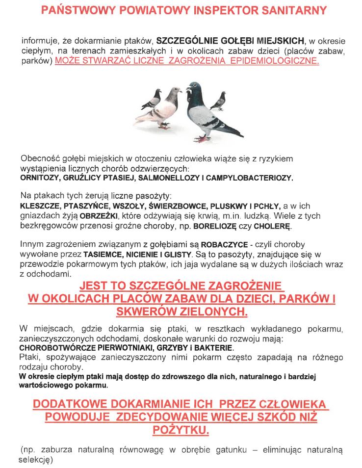 Prośba o niedokarmianie gołębi