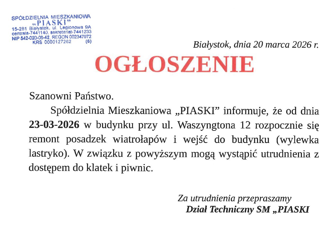 Utrudnienia związane z remontem posadek wiatrołapów i wejść do budynku – Waszyngtona 12