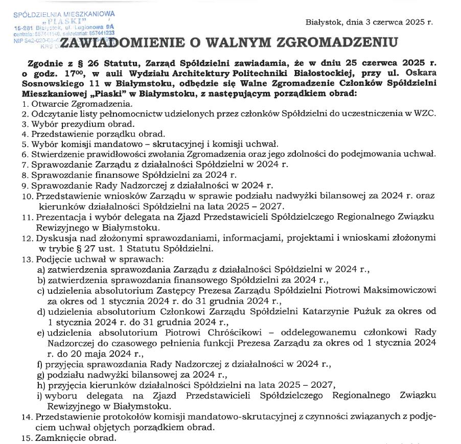 WALNE ZGROMADZENIE 25.06.2025 r.